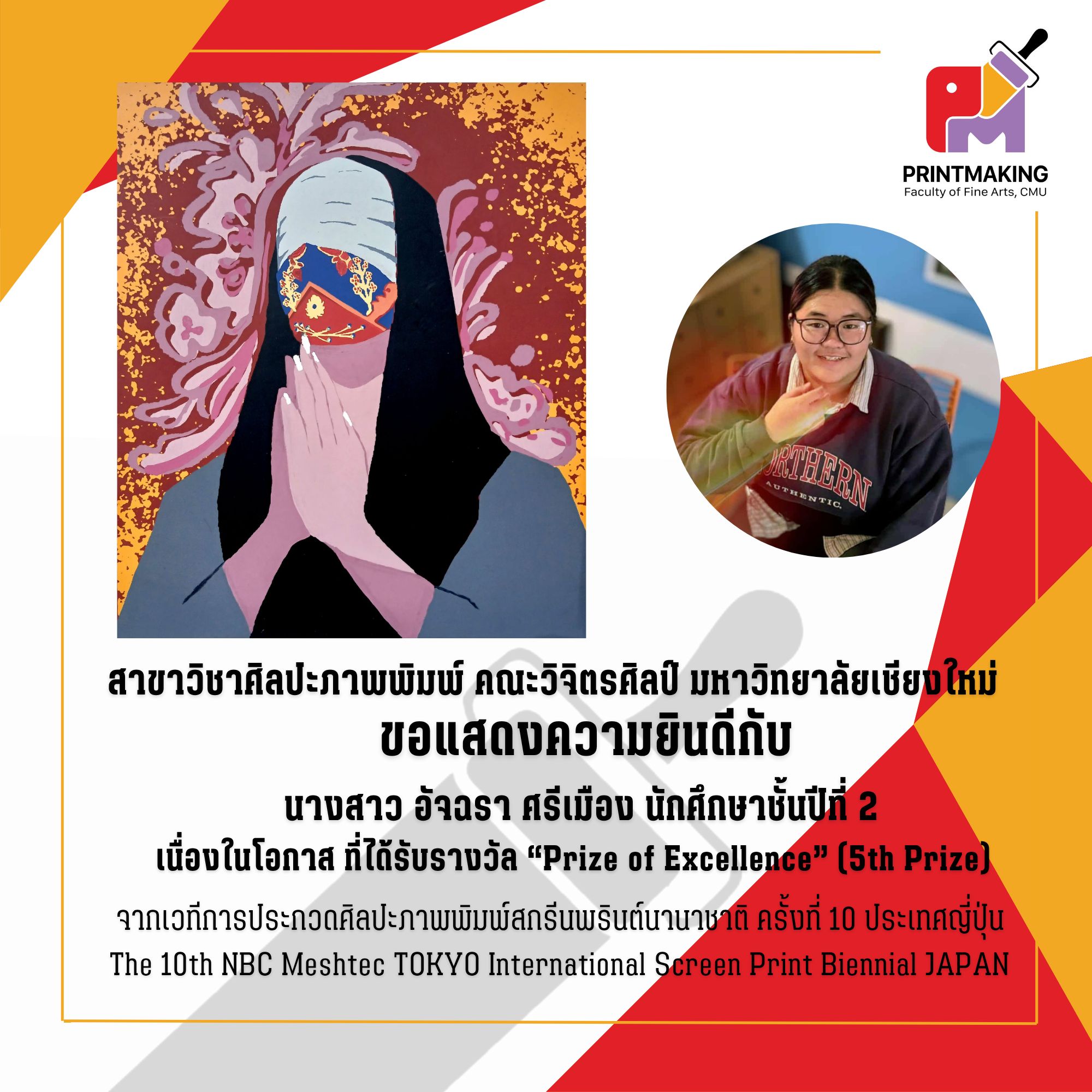 ขอแสดงความยินดีกับ นางสาวอัจฉรา ศรีเมือง นักศึกษาชั้นปีที่ 2 สาขาวิชาศิลปะภาพพิมพ์ คณะวิจิตรศิลป์ มหาวิทยาลัยเชียงใหม่