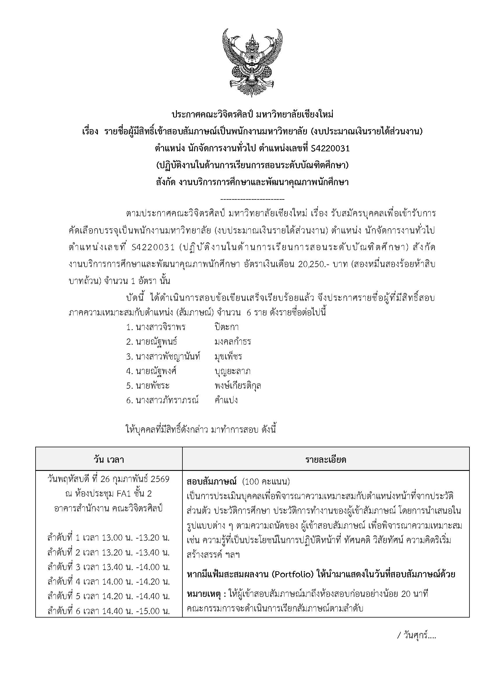 เอกสารดาวน์โหลด: ประกาศรายชื่อผู้มีสิทธิ์เข้าสอบสัมภาษณ์ S4220031