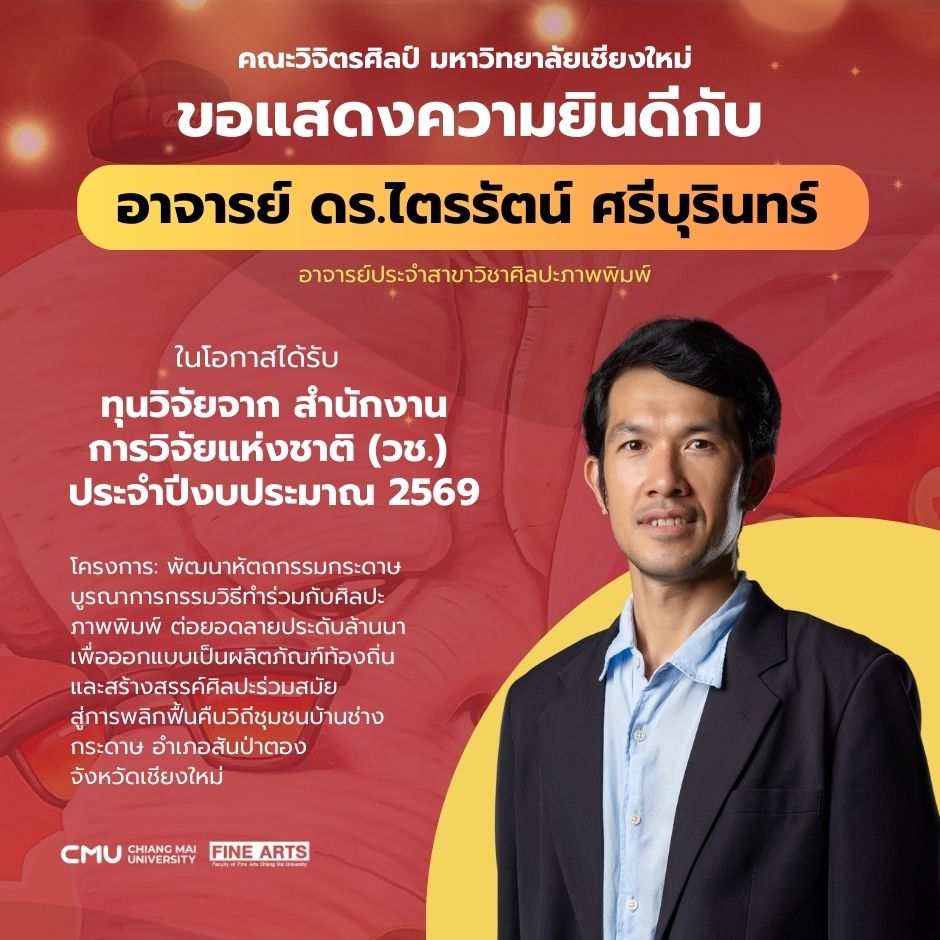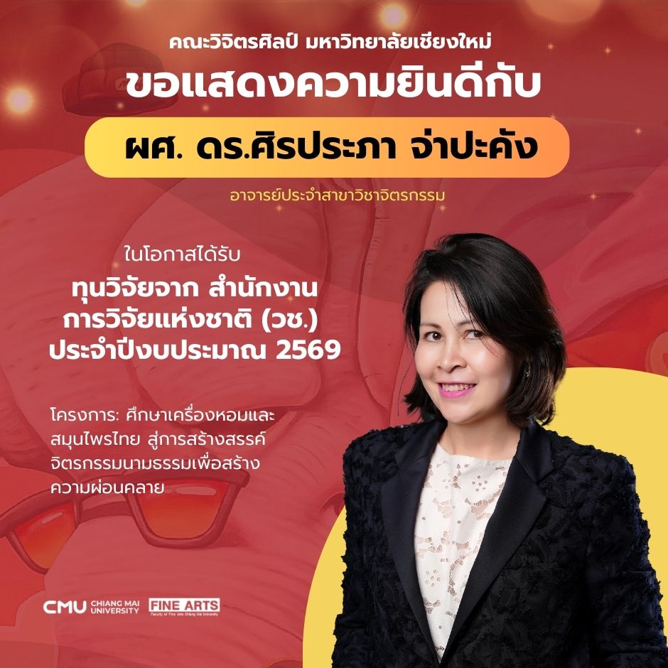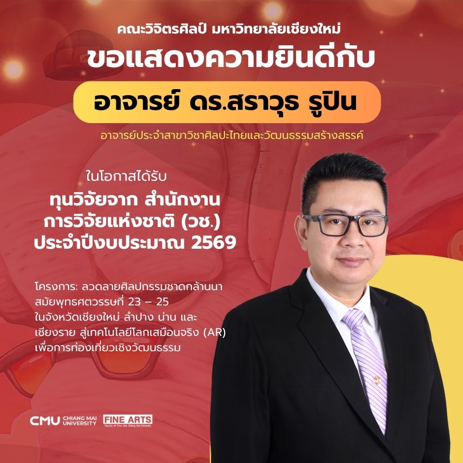 คณะวิจิตรศิลป์ มหาวิทยาลัยเชียงใหม่ ขอแสดงความยินดีกับอาจารย์ ในโอกาสได้รับทุนจาก สำนักงานการวิจัยแห่งชาติ (วช.) ประจำปีงบประมาณ 2569