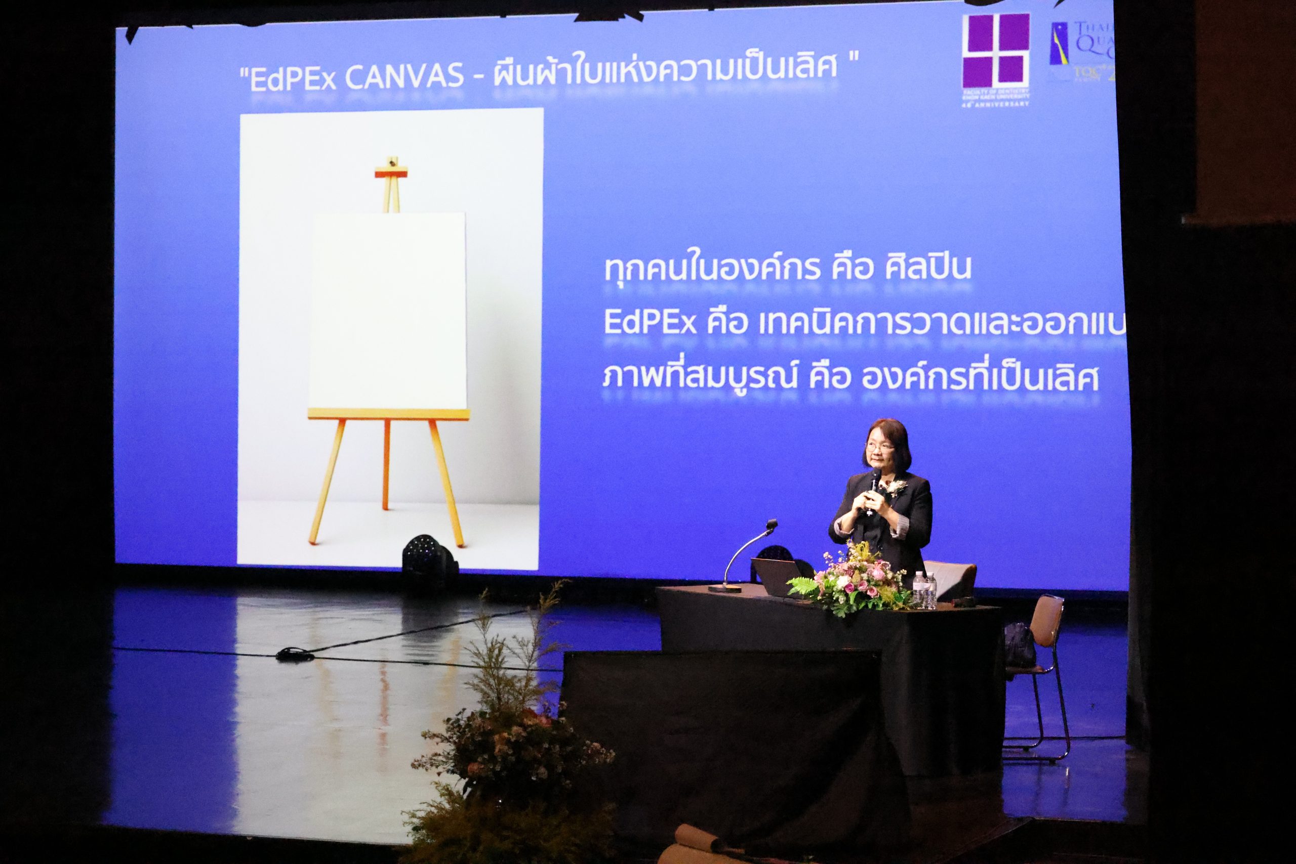 ช่วงภาคเช้าได้รับเกียรติจาก ผู้ช่วยศาสตราจารย์ ดร.ทพญ.รัชฎา ฉายจิต รองคณบดีฝ่ายยุทธศาสตร์ คณะทันตแพทยศาสตร์ มหาวิทยาลัยขอนแก่น บรรยายพิเศษในหัวข้อ “EdPEx Canvas : เส้นทางสู่ความเป็นเลิศขององค์กร (จากประสบการณ์จริงสู่การปฏิบัติ)” ถ่ายทอดแนวคิดการประยุกต์ใช้เกณฑ์ EdPEx ในการพัฒนาองค์กรอย่างเป็นระบบ
