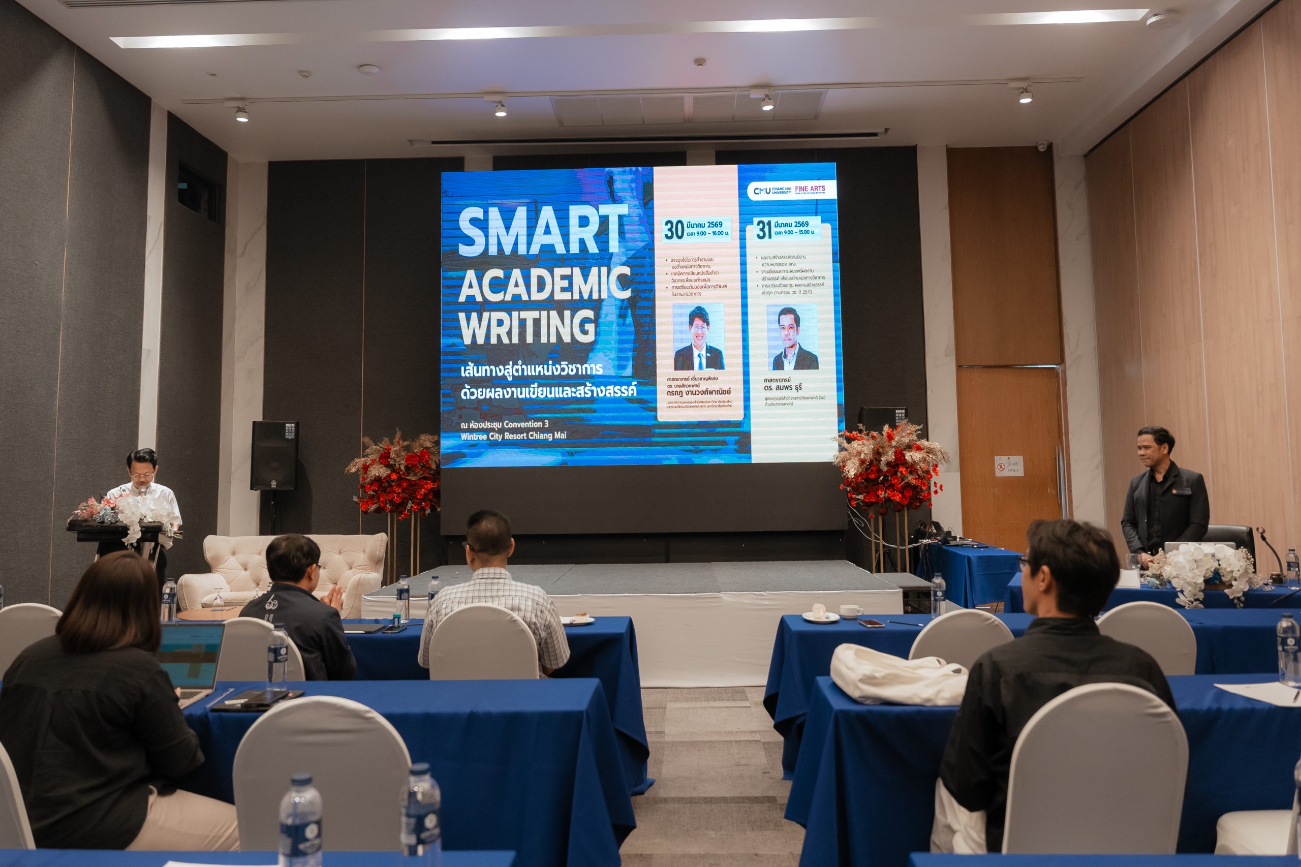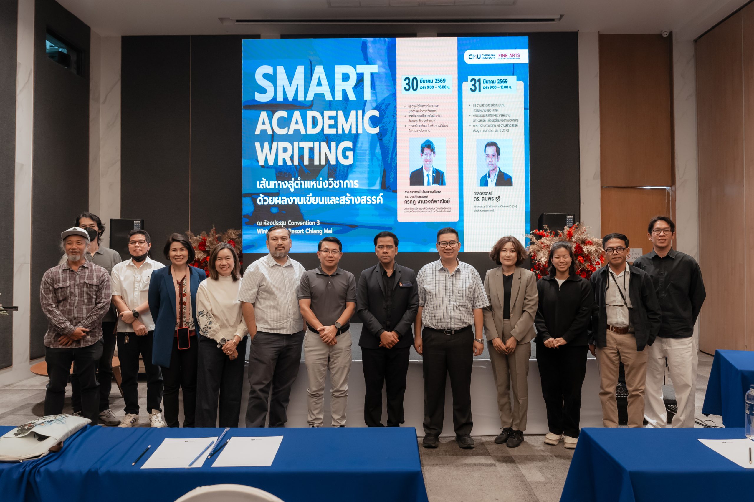คณะวิจิตรศิลป์ มหาวิทยาลัยเชียงใหม่ ได้จัดโครงการอบรมเชิงวิชาการ “SMART ACADEMIC WRITING” ณ ห้องประชุม Convention 3 โรงแรม Wintree City Resort Chiangใหม่ ระหว่างวันที่ 30–31 มีนาคม 2569 ที่ผ่านมา