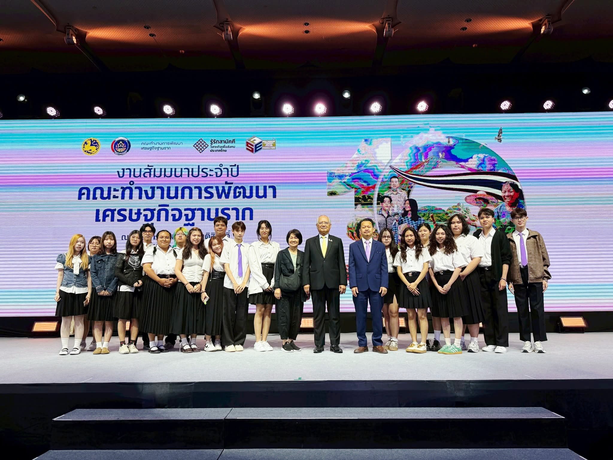 รศ. พิศมัย อาวะกุลพาณิชย์ และ ผศ. ภัทริน ลิมปรุ่งพัฒนกิจ พานักศึกษาปี 2 กลุ่มสิ่งทอ สาขาวิชาการออกแบบ คณะวิจิตรศิลป์ มหาวิทยาลัยเชียงใหม่ เดินทางเข้าร่วมงานสัมมนาประจำปีคณะทำงานการพัฒนาเศรษฐกิจฐานราก ณ ศูนย์ประชุมแห่งชาติสิริกิติ์ วันจันทร์ที่ 29 กันยายน 2568
