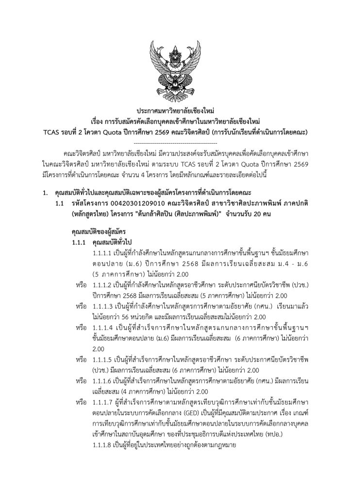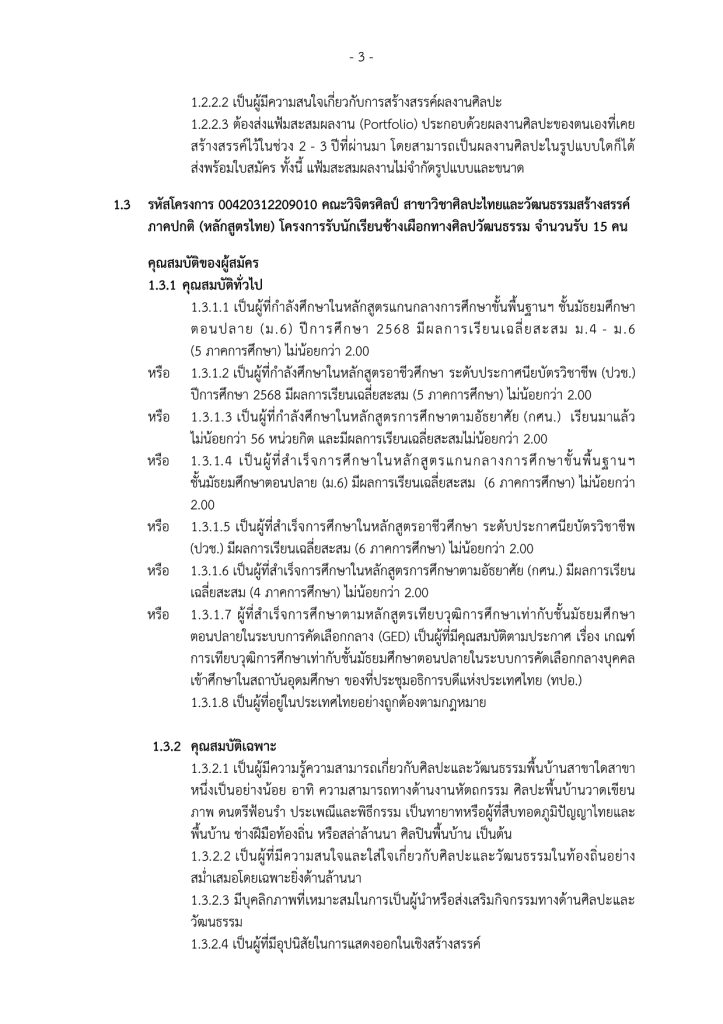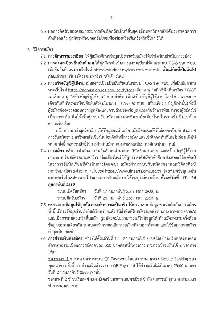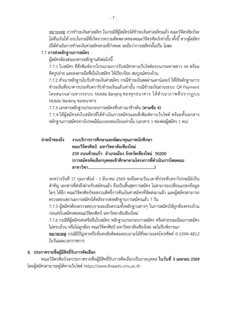 ลิงค์ตรวจสอบรายชื่อ: ระบบรับสมัครบุคคลเพื่อคัดเลือกเข้าศึกษาในคณะวิจิตรศิลป์