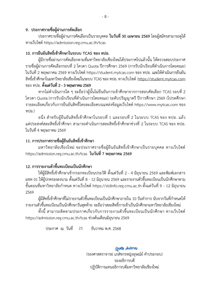 เอกสารดาวน์โหลด: ประกาศผู้มีสิทธิ์รับการคัดเลือกโครงการTCAS69