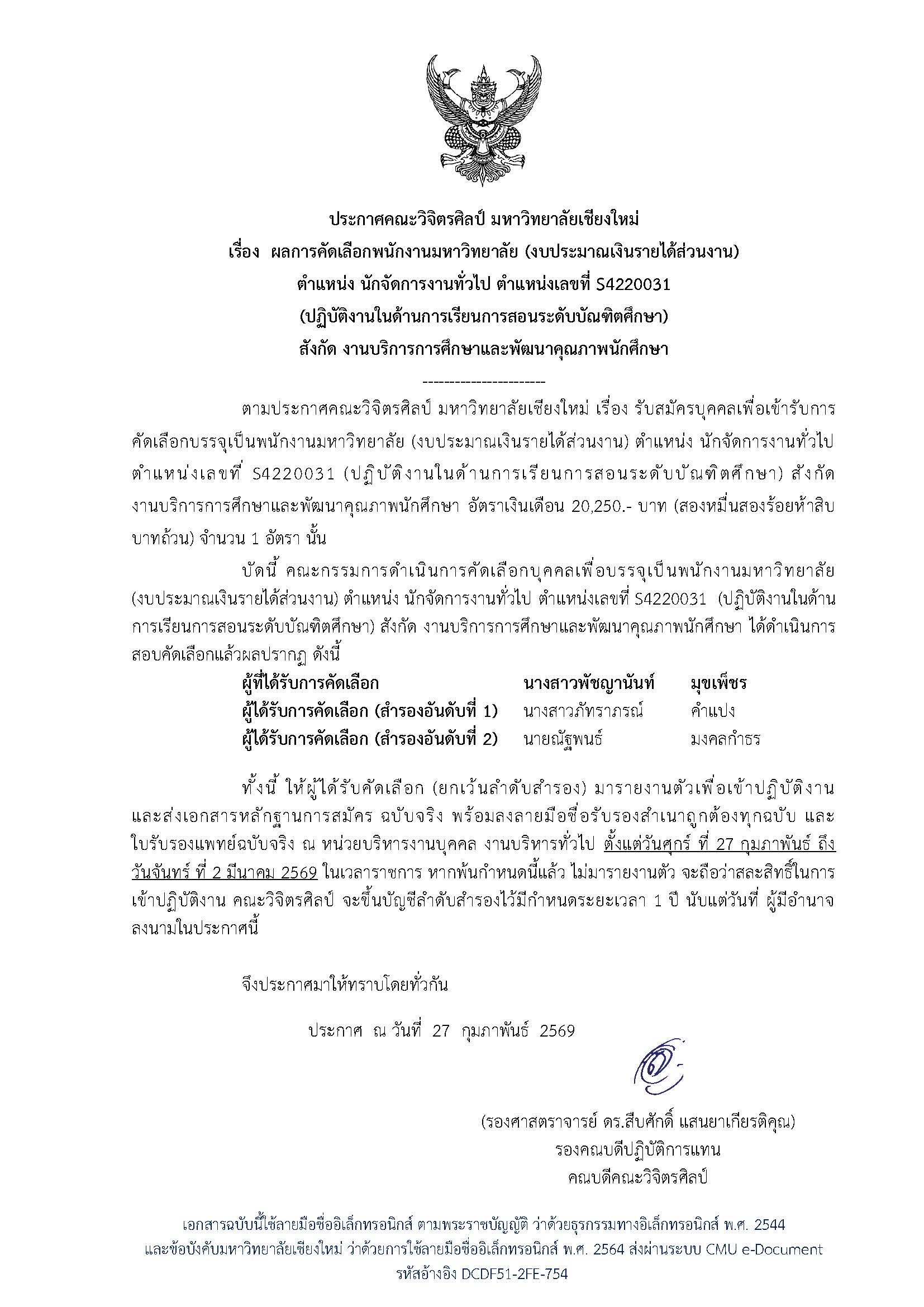 เอกสารดาวน์โหลด : ประกาศผลการคัดเลือกนักจัดการงานทั่วไป S4220031