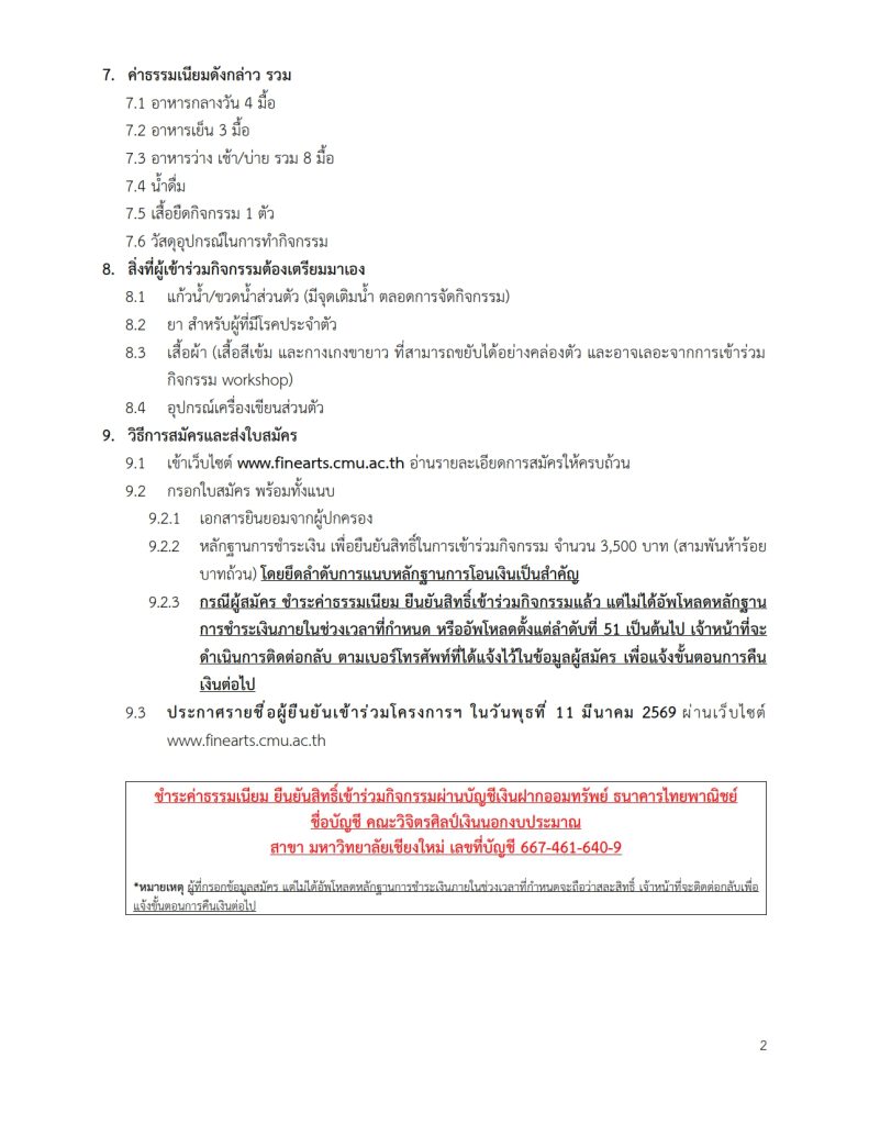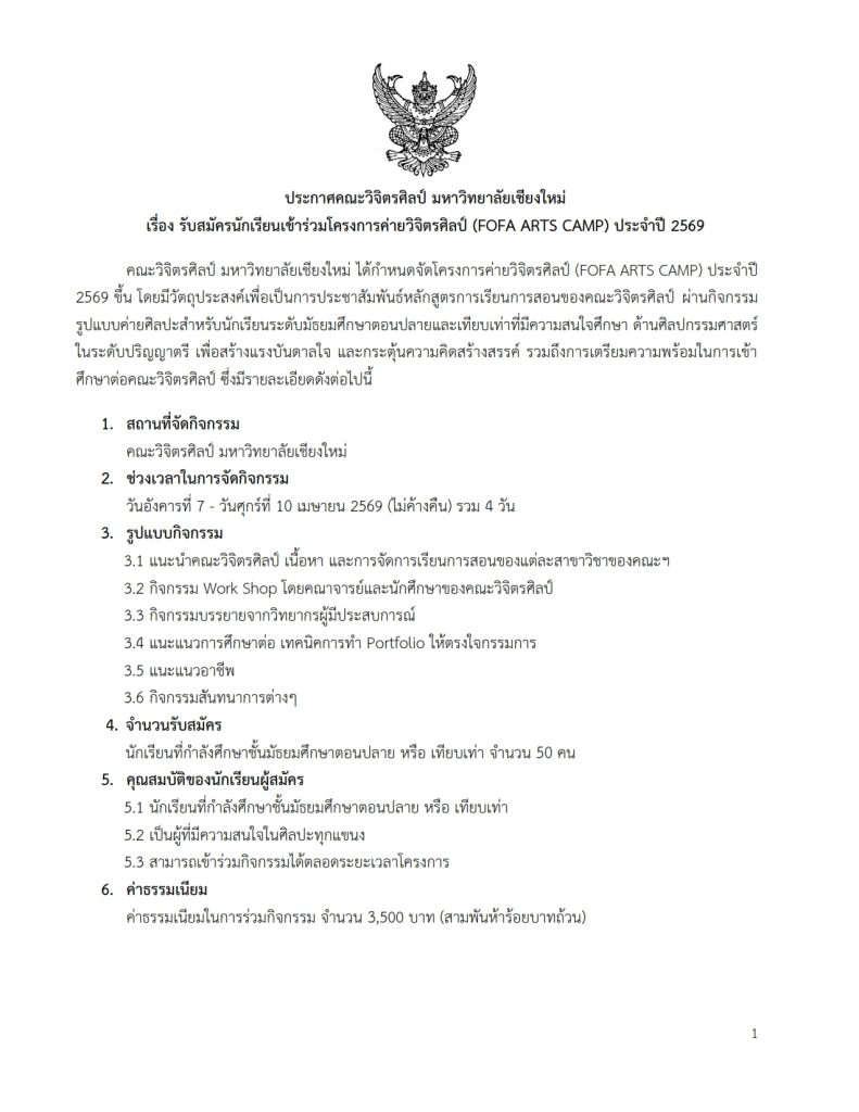 เอกสารดาวน์โหลด: รายละเอียดโครงการค่ายวิจิตรศิลป์ FOFA ARTS CAMP 2026