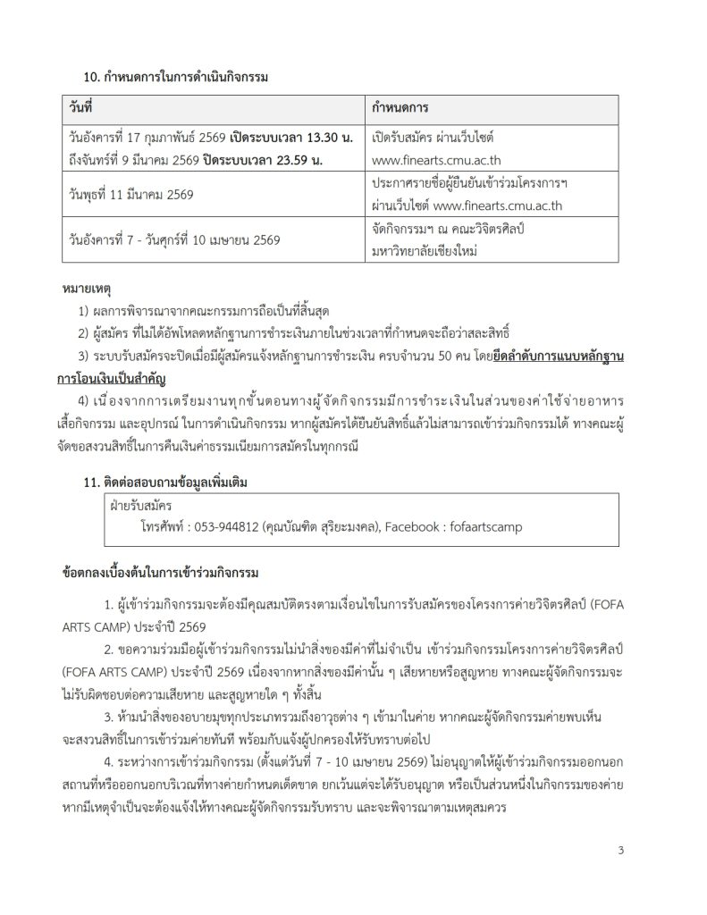 เอกสารดาวน์โหลด: กำหนดการโครงการค่ายวิจิตรศิลป์ FOFA ARTS CAMP 2026