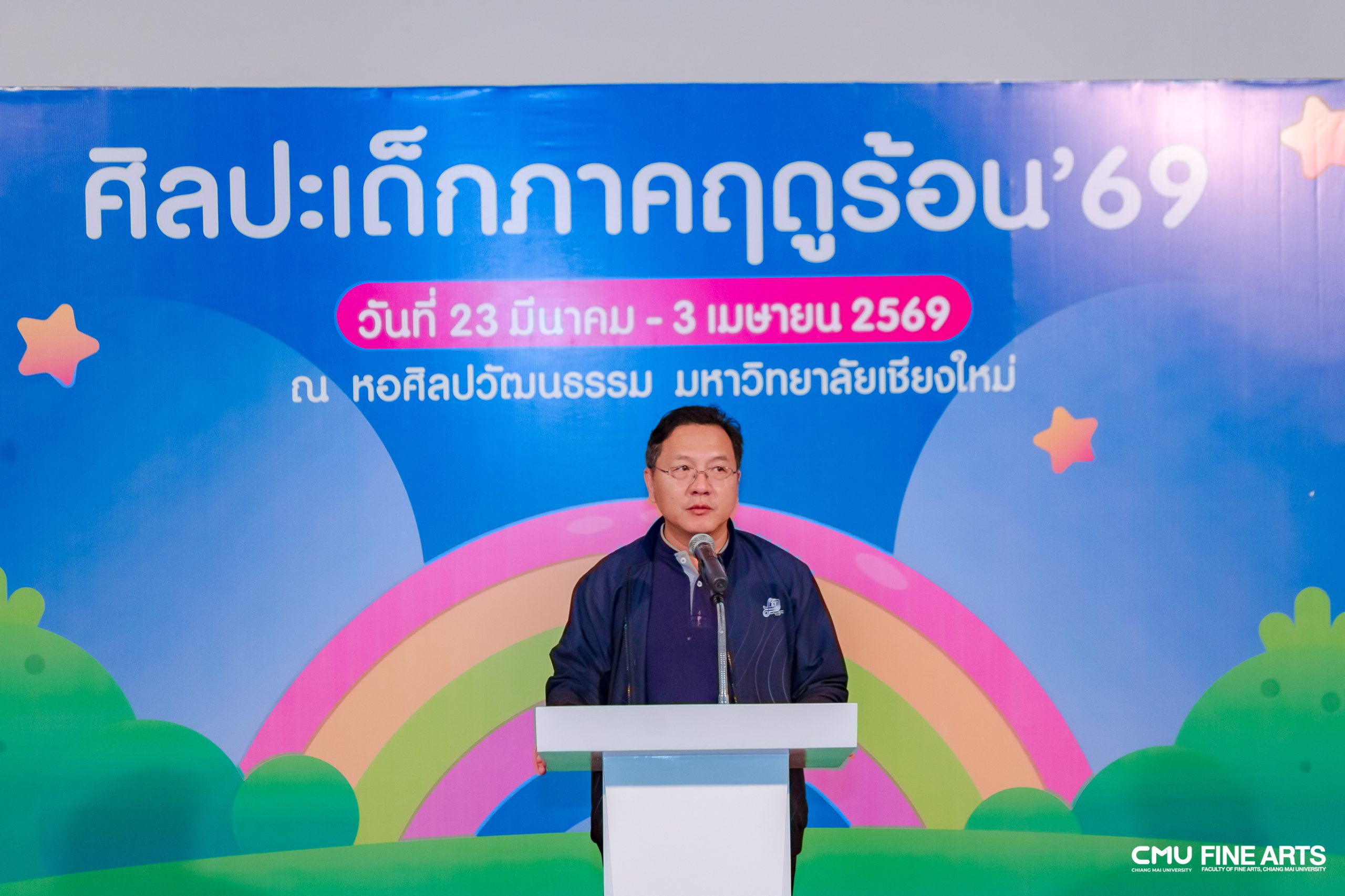 บรรยากาศเต็มไปด้วยความสดใสและความคิดสร้างสรรค์ ในพิธีเปิดโครงการอบรมศิลปะสำหรับเด็กภาคฤดูร้อน ประจำปี พ.ศ. 2569 ซึ่งจัดขึ้น ณ หอศิลปวัฒนธรรม มหาวิทยาลัยเชียงใหม่ โดยได้รับเกียรติจาก รองศาสตราจารย์ ดร.สืบศักดิ์ แสนยาเกียรติคุณ รองคณบดีฝ่ายบริหาร เป็นประธานในพิธีเปิดอย่างเป็นทางการ เมื่อวันที่ 23 มีนาคม 2569 ที่ผ่านมา
