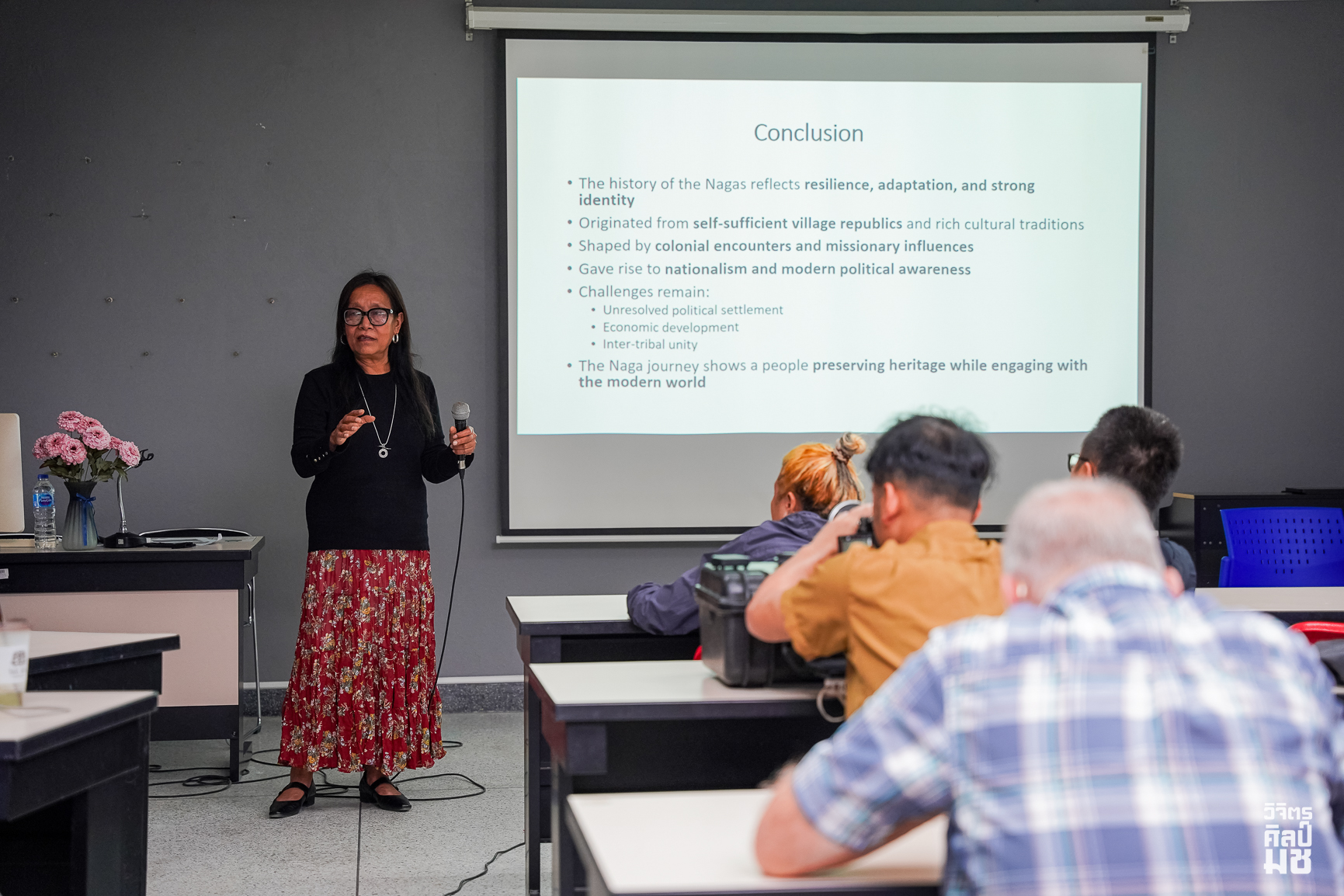 โดยได้รับเกียรติจาก Associate Professor Iris Odyuo อาจารย์จาก Sao Chang College รัฐนากาแลนด์ ประเทศอินเดีย เป็นวิทยากรบรรยาย ถ่ายทอดองค์ความรู้ด้านประวัติศาสตร์ สังคม การเมือง และบทบาทของศาสนาคริสต์ที่มีต่อการก่อรูปอัตลักษณ์และโครงสร้างทางสังคมของชาวนากาและภูมิภาคอินเดียตะวันออกเฉียงเหนือ