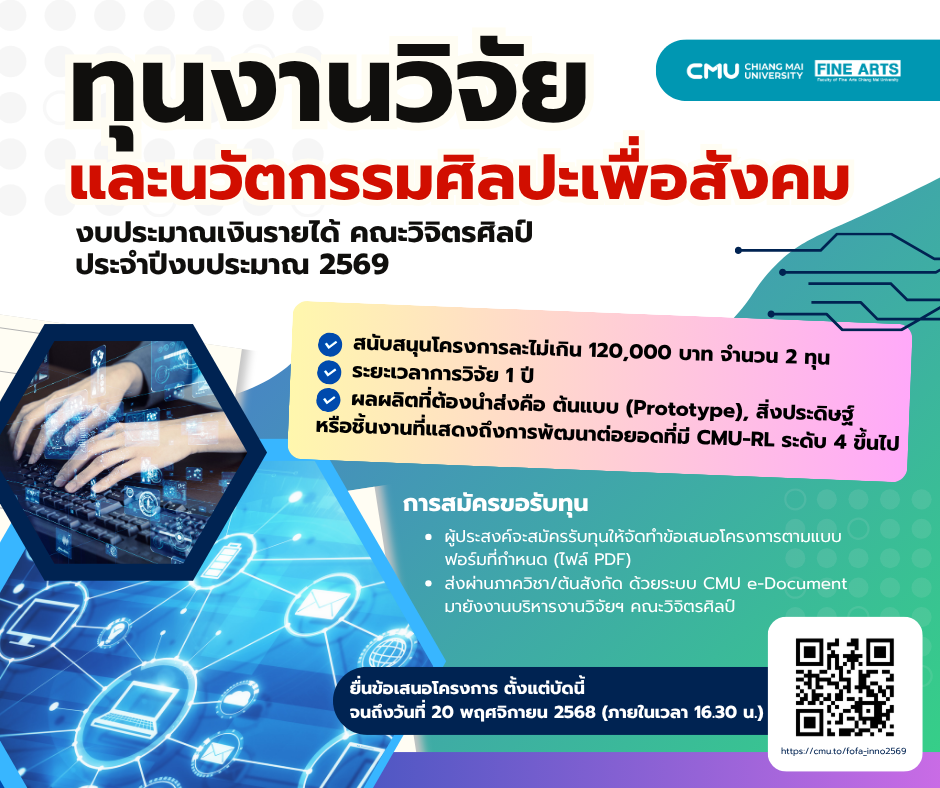ทุนงานวิจัยและนวัตกรรมศิลปะเพื่อสังคม ประจำปีงบประมาณ 2569